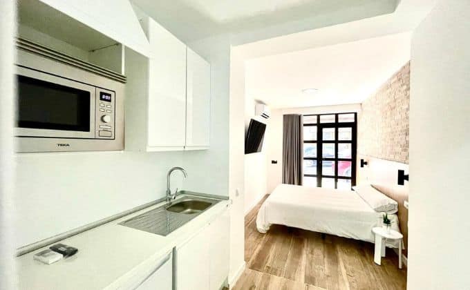 Todos los estudios y apartamentos cuentan con cocina equipada con microondas y nevera o frigorífico.